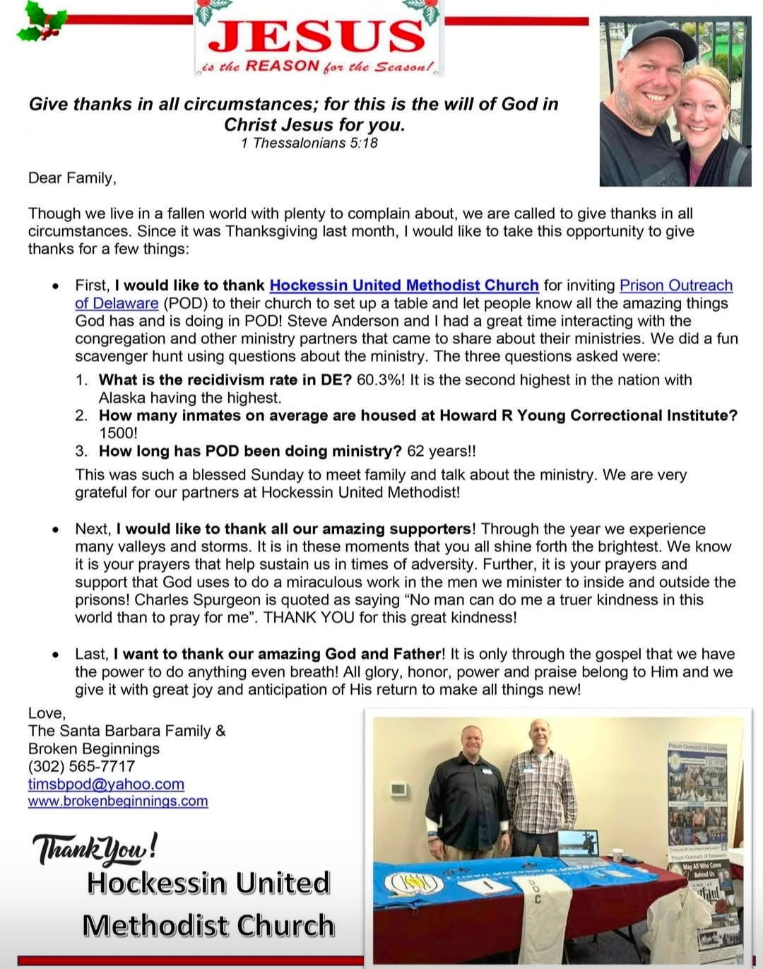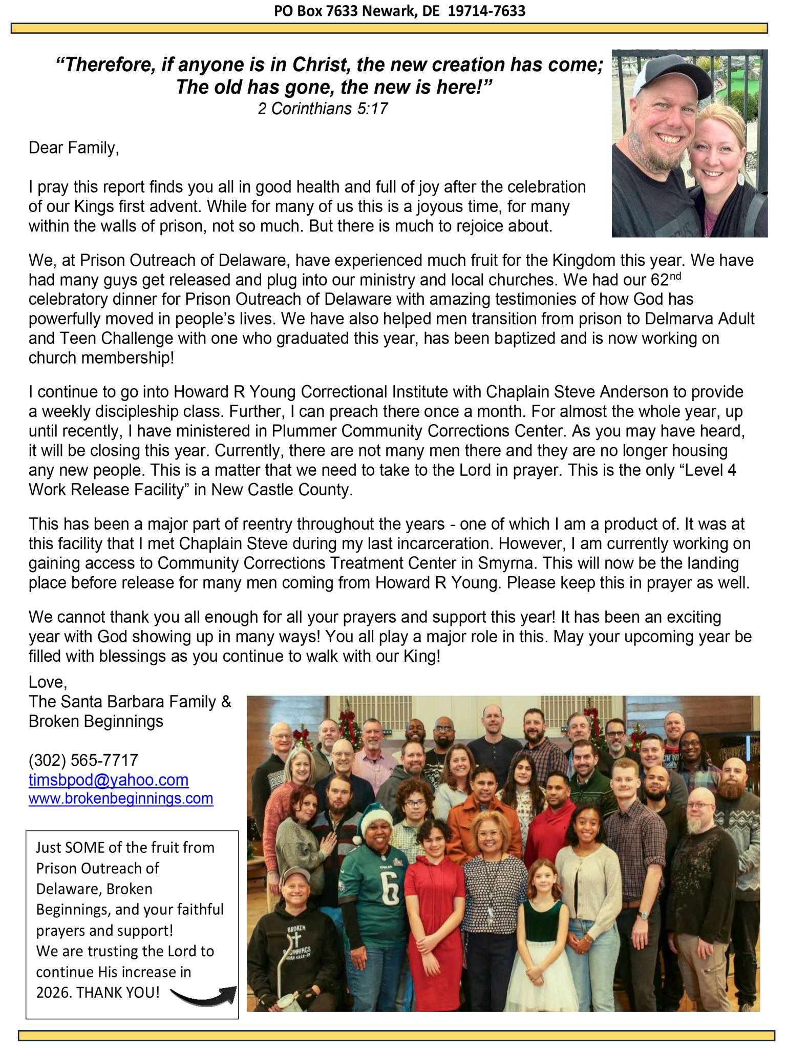 The Prison Outreach of Delaware is making a difference in the lives of incarcerated individuals, families of inmates, and former inmates by teaching the gospel and giving hope.